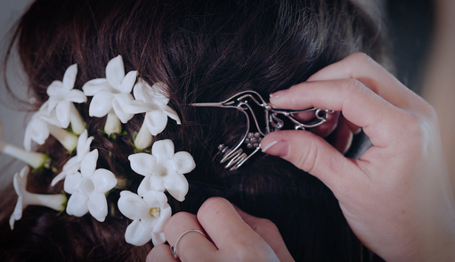 I had the honor of being commissioned (and officiate with long time friend Trevor Benitas) to create two Hummingbird hairpins for my dear girlfriend, Andrea Pisani, for her wedding day. Silver lost wax casted and laser welded comb hairpins, these two hummingbirds adorned Andrea’s hair with a hint of elegance. 75 hours to create. Videographer extraordinaire, Micheal Daniel of Swan Dive Media, captured the process from start to finish. Take a moment to watch this special video.