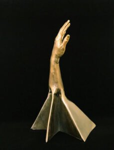 This sculpture was my very first commission (in sculpture) from Calvin Garitt. Two part lost wax casted bronze hand, and sculpted triangle base that I welded together. Intended to hold necklaces.
